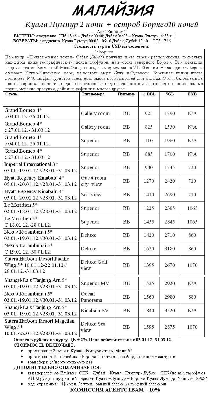 13 Дек 2011 14:35:16 МАЛАЙЗИЯ + о.Борнео 03.01.12.-31.03.12. от фирмы ПРОТРЕВЭЛ