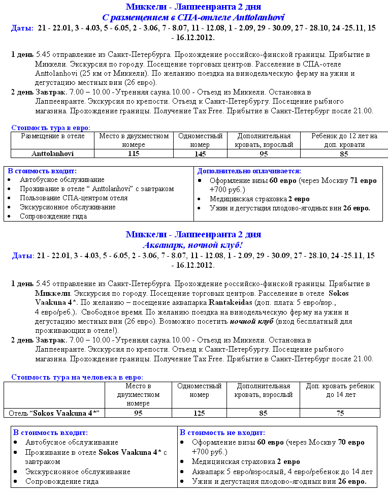 19 Янв 2012 13:53:26 ФИНЛЯНДИЯ Миккели - Лаппеенранта (2 дня) от фирмы ДЯДЮШКА НИК
