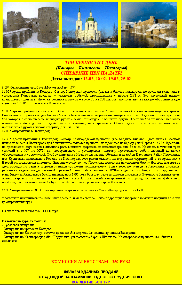 24 Янв 2012 19:31:35 РОССИЯ Копорье-Кингисепп-Ивангород СНИЖЕНИЕ ЦЕН от фирмы БОН ТУР