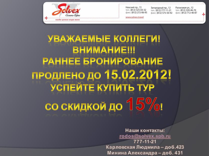 пляжные, экскурсионные, рекламные, авиабилеты, визы, вакансии, семинары   +7 (921939-81-99