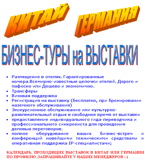 08 Фев 2012 16:29:41 КИТАЙ; ГЕРМАНИЯ - ВЫСТАВКИ - бизнес-туры на от фирмы OPEN UP