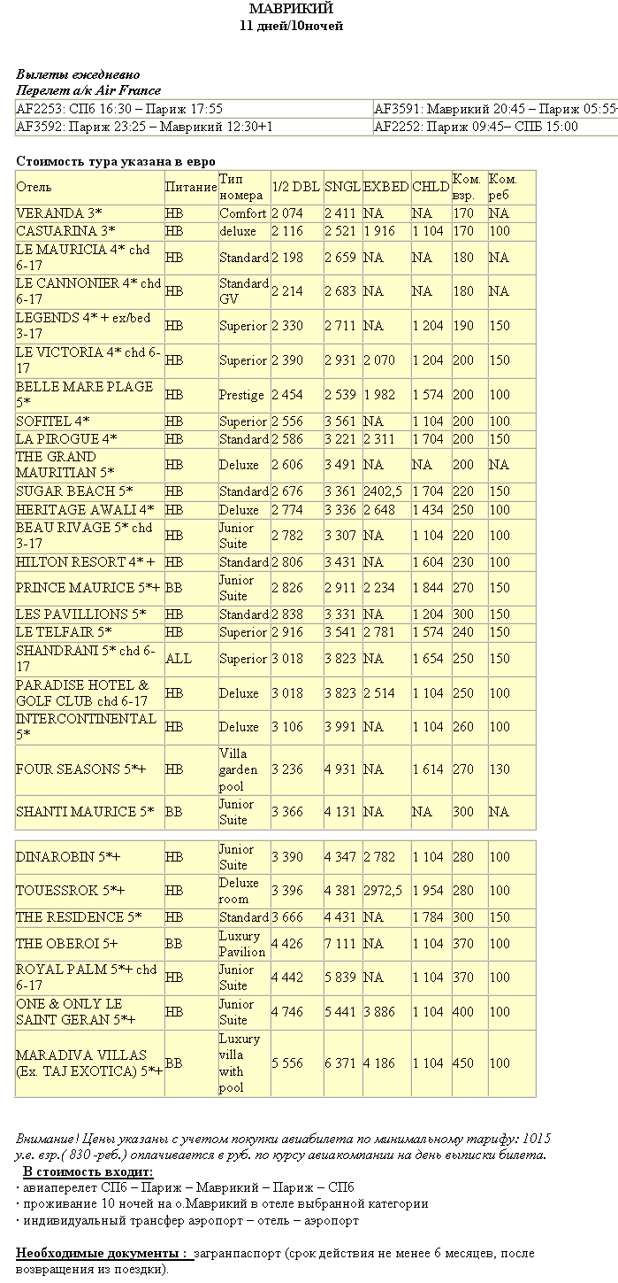 13 Фев 2012 12:46:43 МАВРИКИЙ от фирмы ПИТЕРТУР