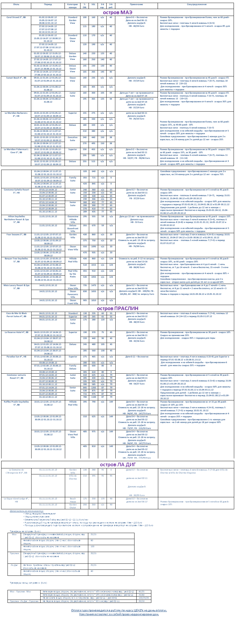 СЕЙШЕЛЫ, СУТОЧНЫЕ ЦЕНЫ НА СЕЗОН 2012 от фирмы ПРАТА |