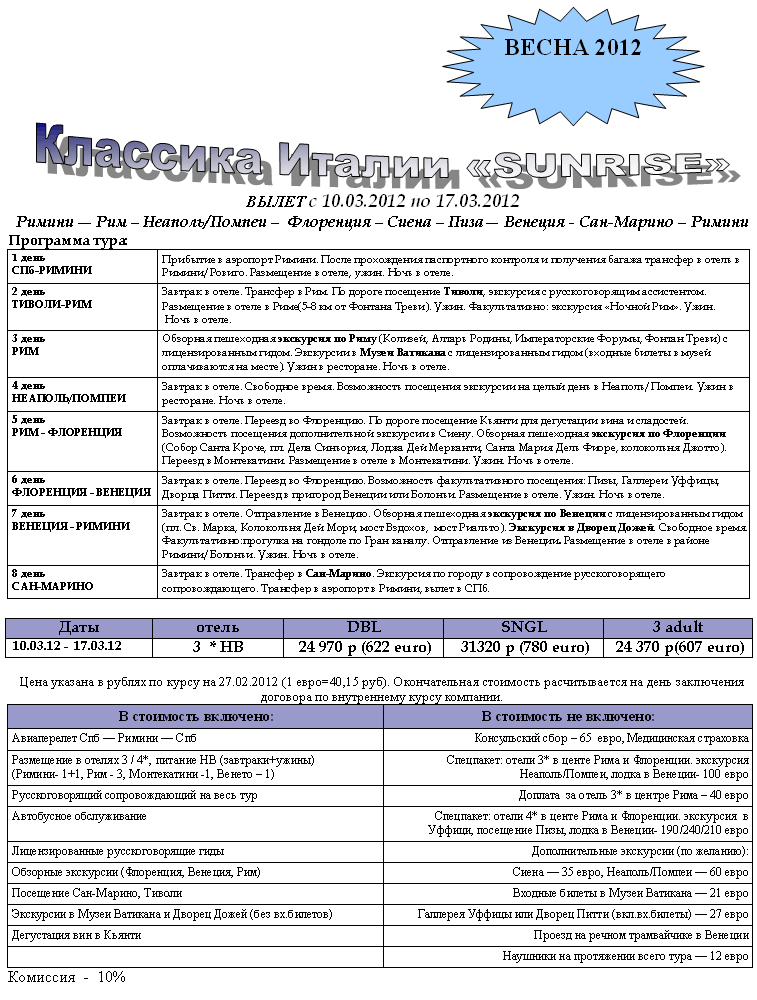 27 Фев 2012 12:20:27 ИТАЛИЯ 10.0317.03 Классика Италии SUNRISE (Римини) от фирмы ФЛАМИНГО