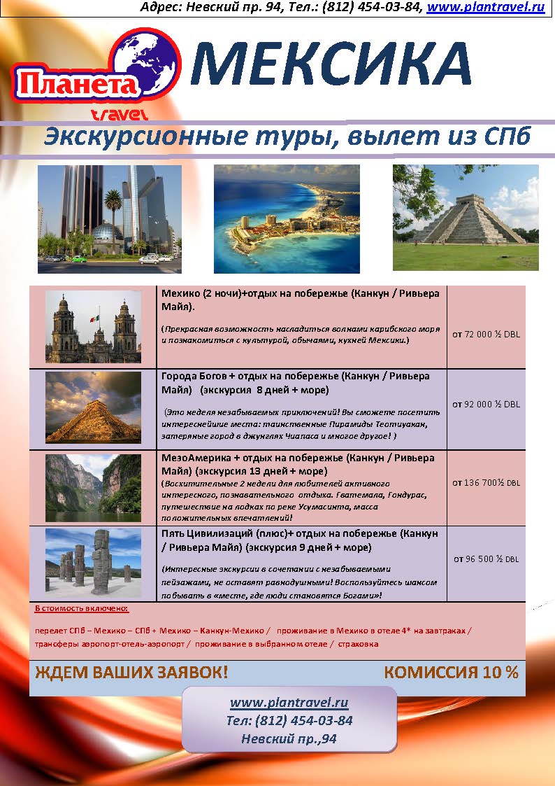 06 Мар 2012 11:08:47 МЕКСИКА: ЭКСКУРСИИ И ОТДЫХ от 71 000 руб. из Спб от фирмы ПЛАНЕТА TRAVEL
