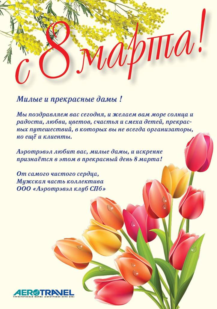 07 Мар 2012 14:43:19 ПОЗДРАВЛЕНИЕ с 8 марта, милые и прекрасные дамы! от фирмы АЭРОТРЭВЭЛ КЛУБ СПБ