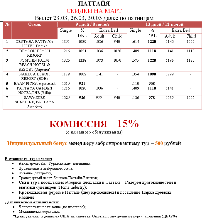 20 Мар 2012 11:57:21 ТАЙЛАНД - ПАТТАЙЯ - 23.03, 26.03, 30.03, далее по пятницам от фирмы СЕВЕРНЫЙ ТРОПИК