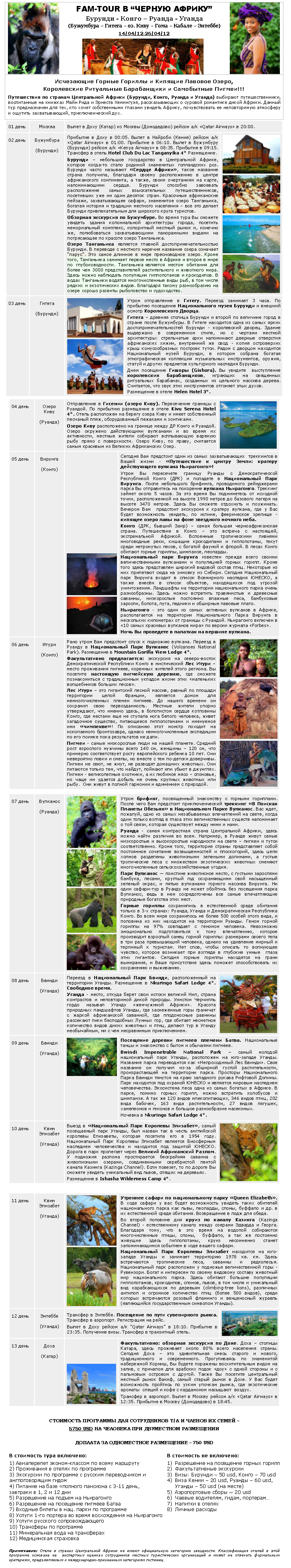 АФРИКА 14.04-26.04 Бурунди-Конго-Руанда-Уганда - 13дн/14н - Экскурсионный fam trip от фирмы KON-TIKI |