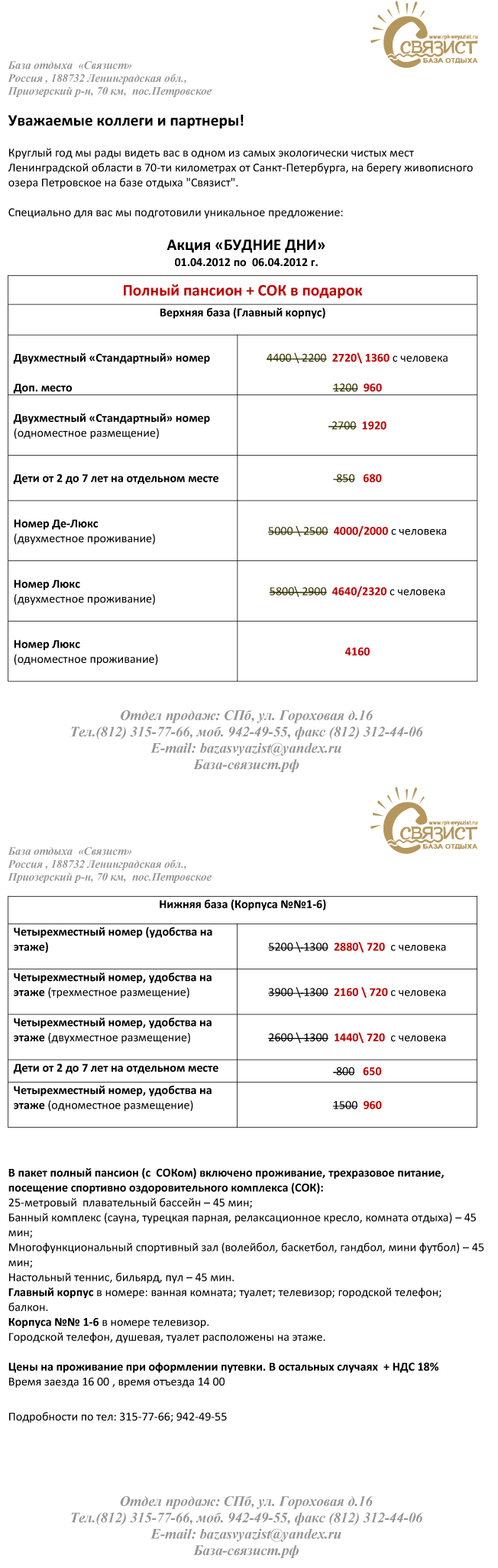 29 Мар 2012 14:32:20 РОССИЯ - Ленобласть - база отдыха Связист - АКЦИИ от фирмы БАЗА ОТДЫХА СВЯЗИСТ