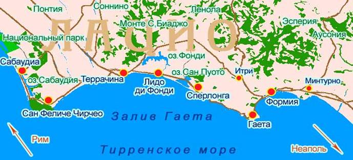 - экскурсии в г. Террачина, Сабаудия, Сан Феличе Чирчео, Гаэта и Сперлонга.