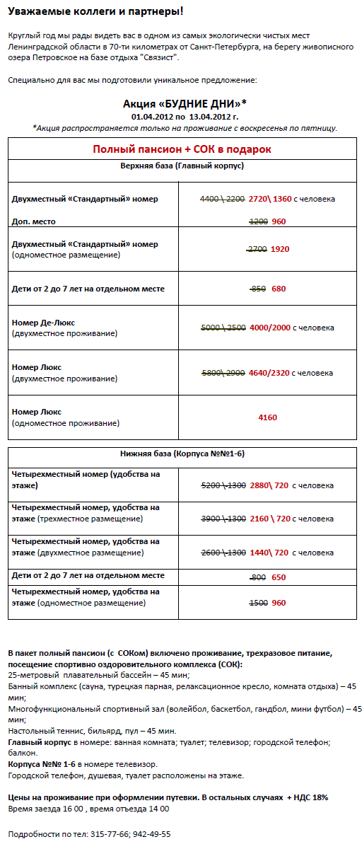 06 Апр 2012 11:52:05 РОССИЯ. ЛенОбласть. Акция "БУДНИЕ ДНИ" от фирмы БАЗА ОТДЫХА СВЯЗИСТ