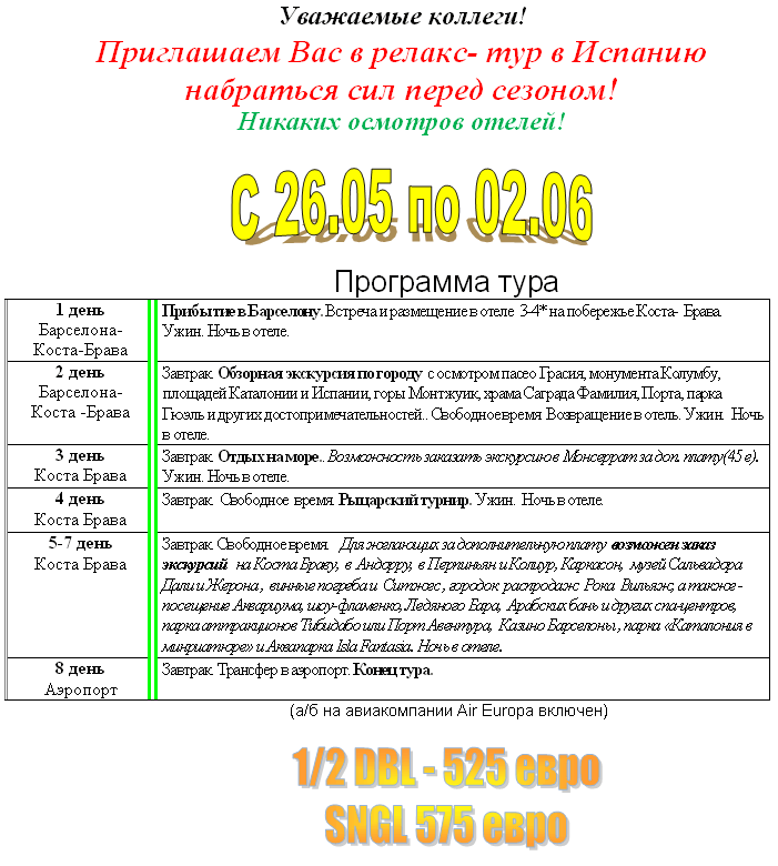 10 Апр 2012 19:25:40 ИСПАНИЯ 26.05-02.06 РЕЛАКС ТУР (без осмотра отелей!) от фирмы ИВОЛГА