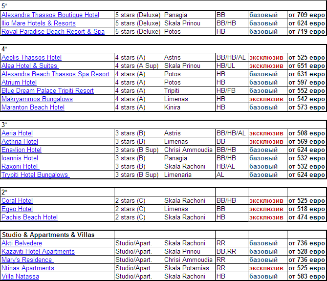 ГРЕЦИЯ. Список БАЗОВЫХ и ЭКСКЛЮЗИВНЫХ отелей на о. Тасос с ценами от МУЗЕНИДИС ТРЭВЕЛ