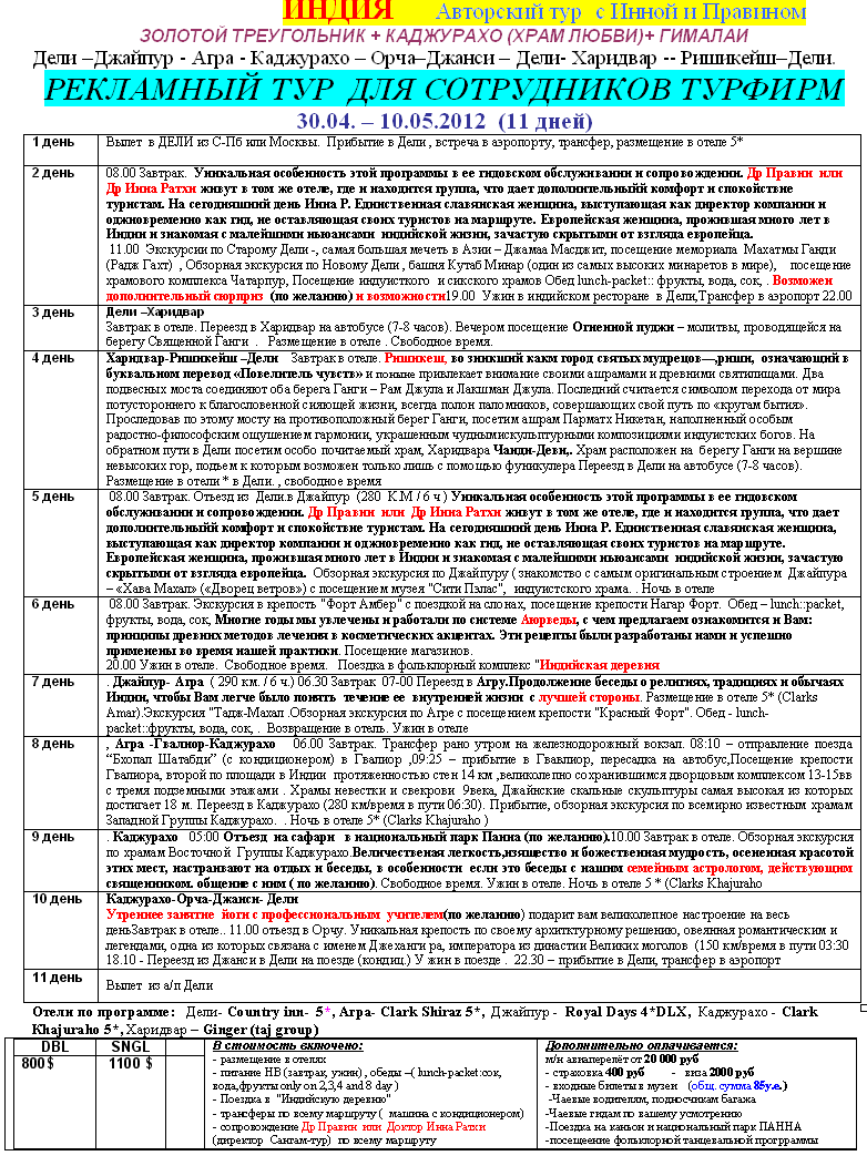 12 Апр 2012 11:56:56 ИНДИЯ 30.04-10.05 РЕКЛАМНЫЙ ТУР Золотой Треугольник + Каджурахо + Гималаи от фирмы ВОЯЖ