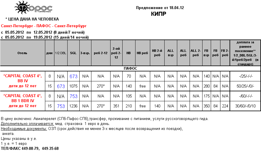 18 Апр 2012 13:21:34 КИПР 05.05 (7,14 ночей) СПО от фирмы ФОРОС