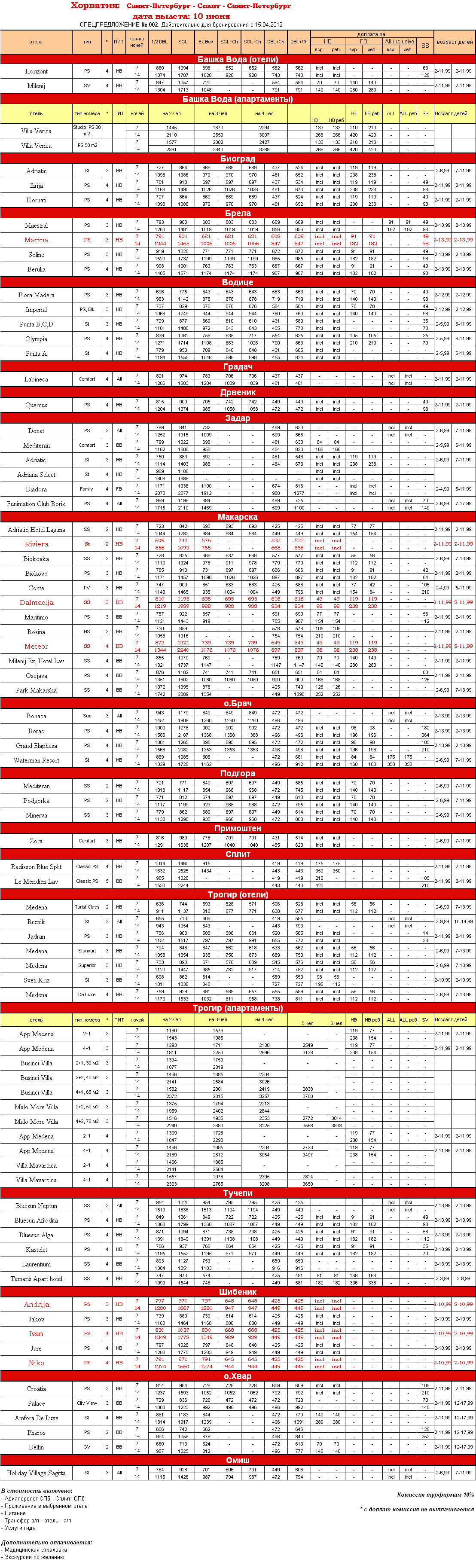25 Апр 2012 13:31:37 ХОРВАТИЯ, Средняя Далмация (Сплит) 10,06 неделя, 2 недели Гарантированные отели от фирмы АКАДЕМИЯ