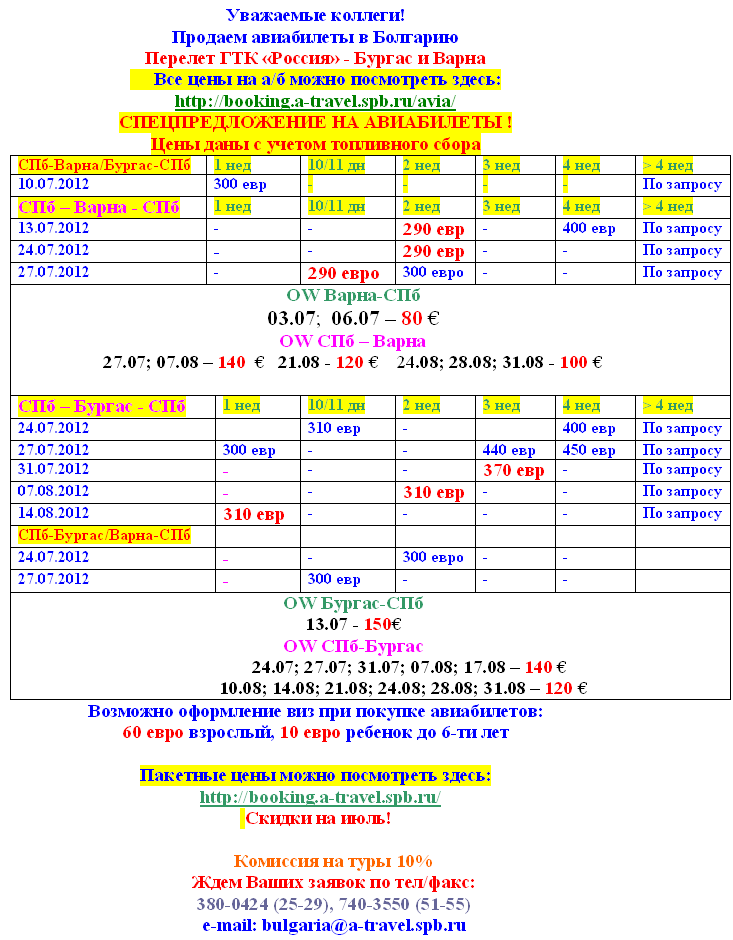 29 Июн 2012 12:08:38 БОЛГАРИЯ - ИЮЛЬ - АВИАБИЛЕТЫ от 80 ЕВРО от фирмы АКАДЕМИЯ