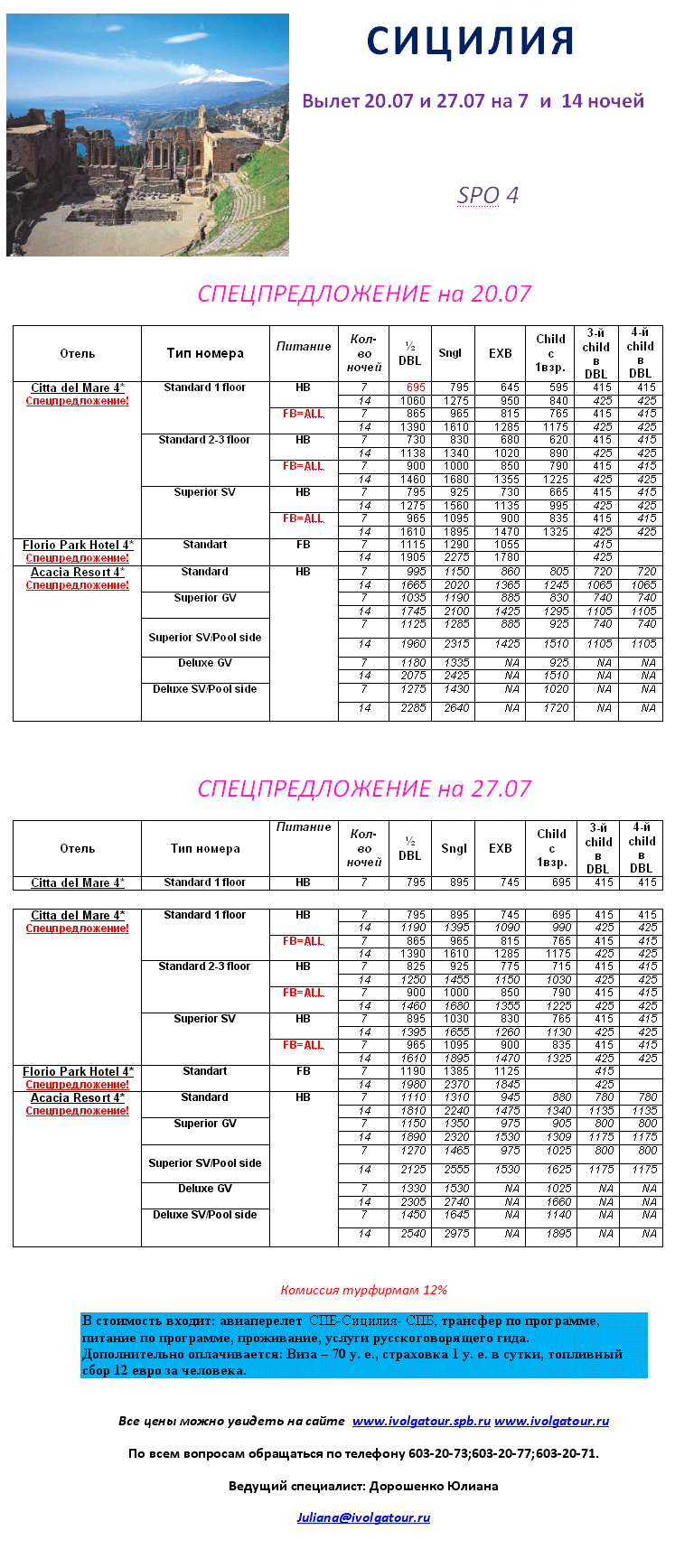 17 Июл 2012 11:58:09 ИТАЛИЯ - СИЦИЛИЯ Палермо 20.07 и 27.07 на 7 и 14 ночей от 695 евро от фирмы ИВОЛГА