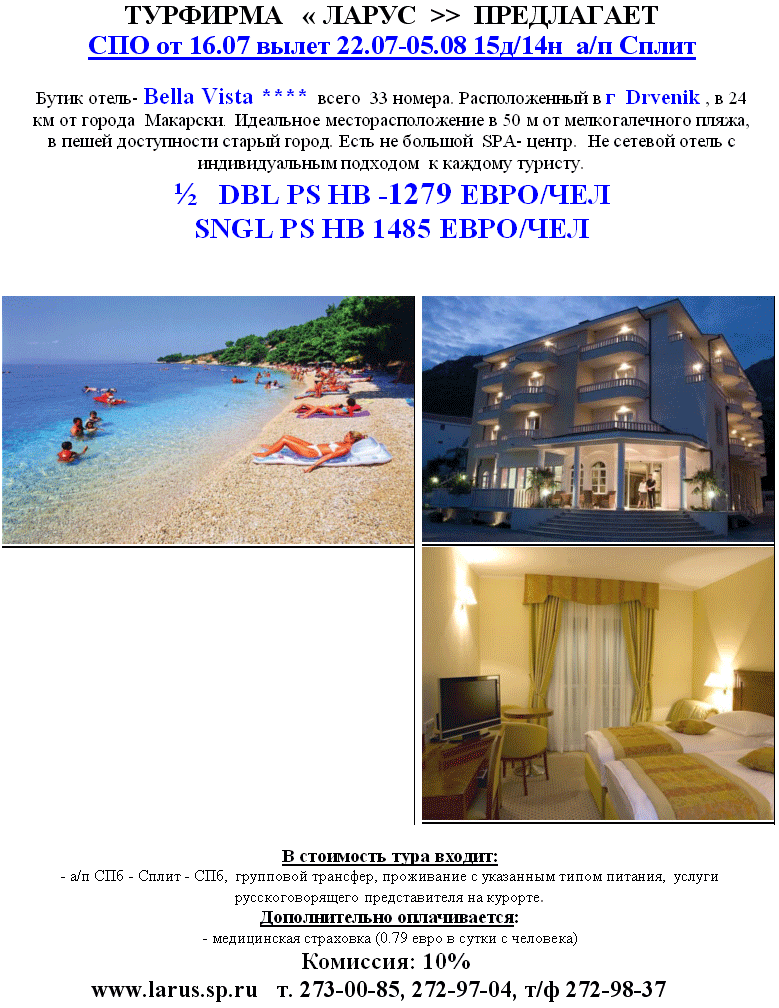 19 Июл 2012 13:16:20 ХОРВАТИЯ - Drvenik - Bella Vista 4* - 22.07-05.08 15д/14н а/п Сплит от фирмы ЛАРУС
