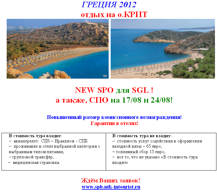 24 Июл 2012 18:59:09 ГРЕЦИЯ. о.Крит СПО на SGL, СПО на 17.08, 24.08 от фирмы ИНТУРИСТ