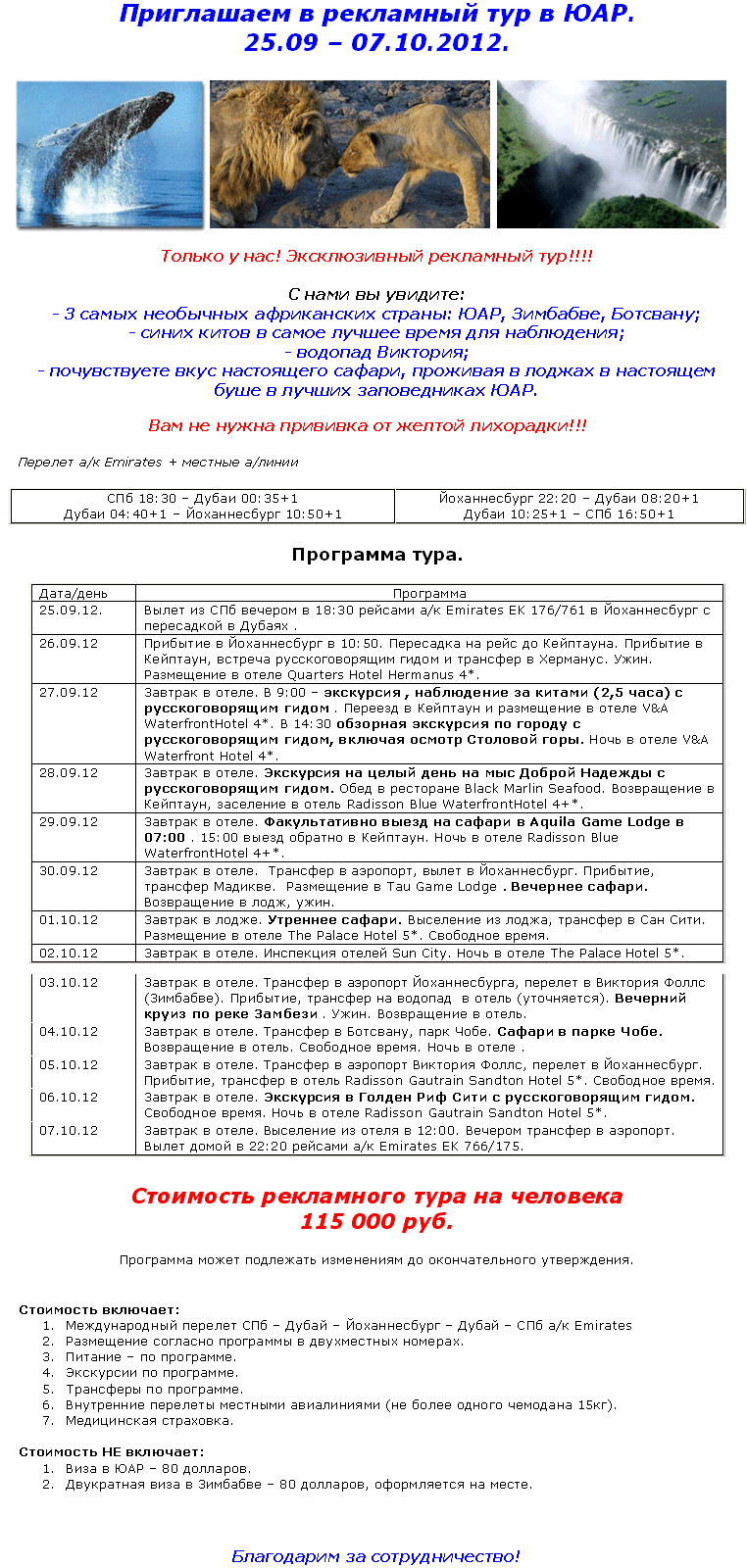 ЮАР 25.09-07.10 Эксклюзивный РЕКЛАМНЫЙ ТУР от Кейптауна до водопада Виктория от фирмы ПИТЕРТУР |