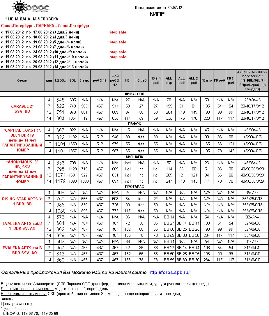 КИПР СПО на 15.08 от фирмы ФОРОС |