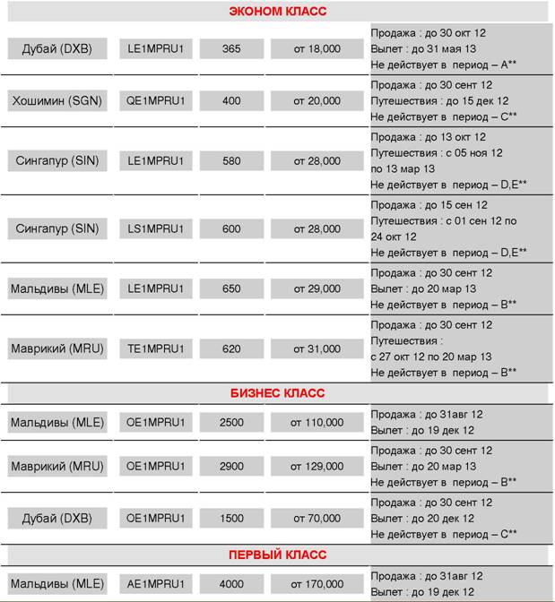 данные промо тарифы Эмирейтс не действительны для путешествия в