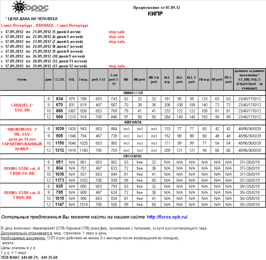 10 Сен 2012 13:17:42 КИПР СПО на заезд 17.09 от фирмы ФОРОС