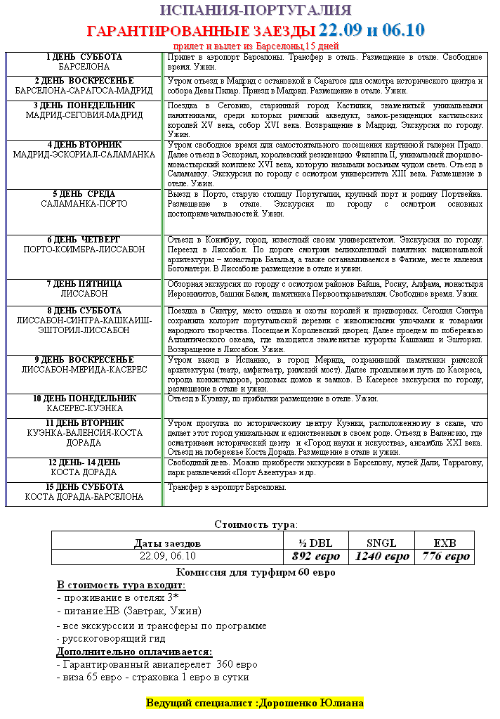 11 Сен 2012 15:52:25 ИСПАНИЯ - ПОРТУГАЛИЯ, экскурсионный тур на 22.09 и 06.10. Гарантированные места от фирмы ИВОЛГА