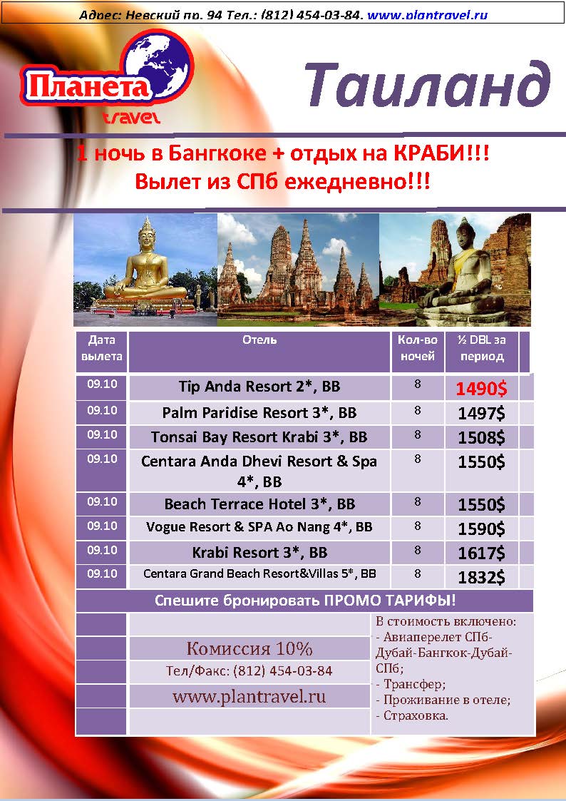 ТАЙЛАНД-БАНГКОК+КРАБИ от 1490$ от фирмы ПЛАНЕТА TRAVEL