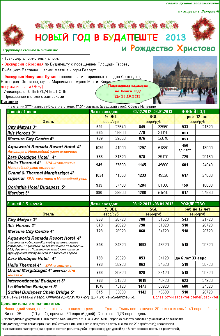 ВЕНГРИЯ - БУДАПЕШТ на Новый Год и Рождество - повыш. комиссия от фирмы ВЕНГРИЯ ТУР |