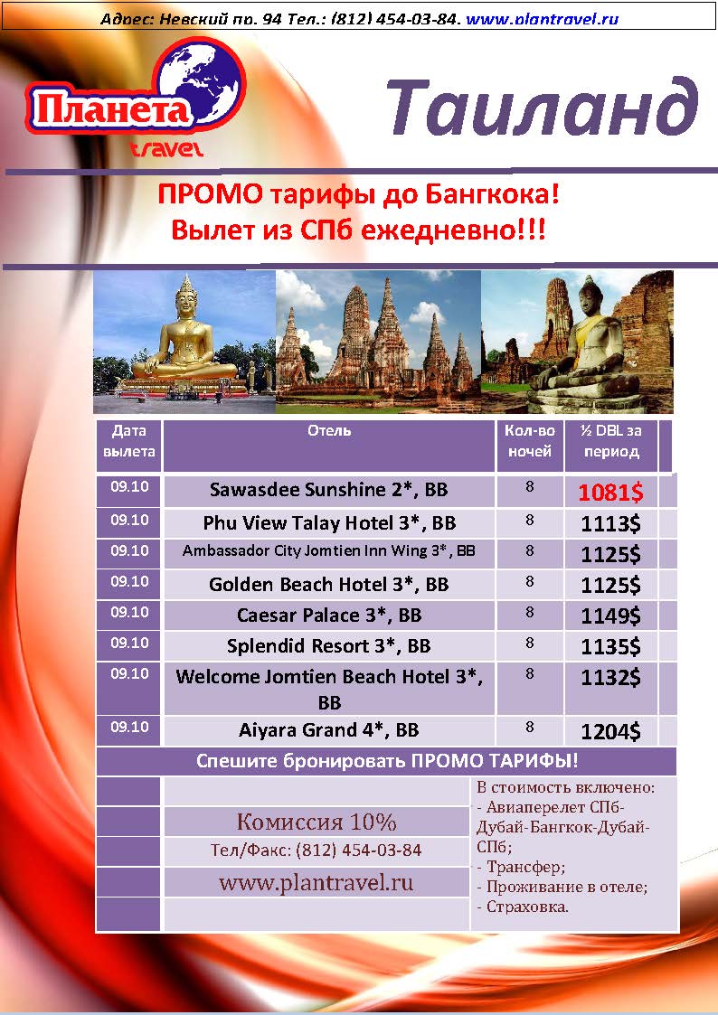 03 Окт 2012 13:16:32 ТАЙЛАНД из СПб от 1081$ от фирмы ПЛАНЕТА TRAVEL