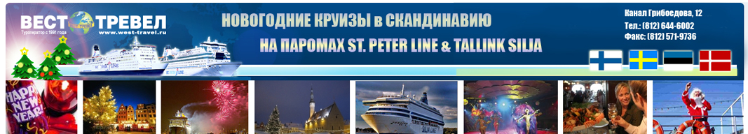 КРУИЗЫ НОВОГОДНИЕ от 125 у.е. Хельсинки,Стокгольм,Таллинн, Осло от фирмы ВЕСТ ТРЕВЕЛ |
