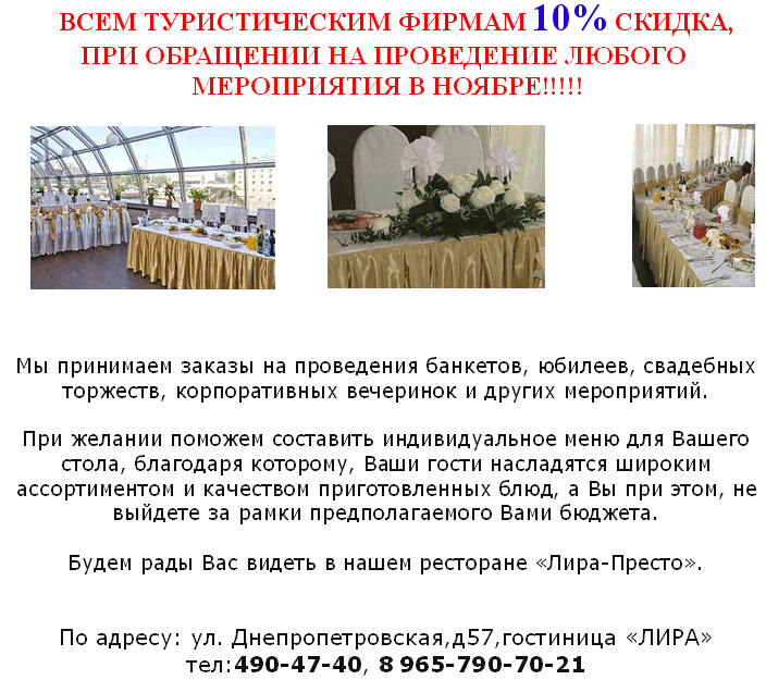 22 Окт 2012 15:02:37 РОССИЯ - СПб - ресторан ЛИРА-ПРЕСТО - приглашаем к сотрудничеству - от фирмы ГОСТИНИЦА ЛИРА
