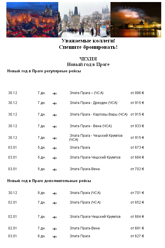 ЧЕХИЯ, ПРАГА - Новогодние туры от 627 евро от фирмы АМИГО-ТУРС |