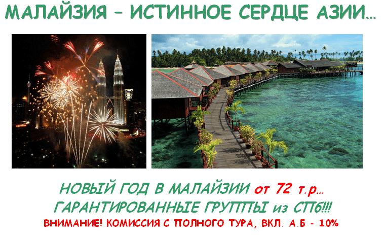 МАЛАЙЗИЯ - Новый Год - 26, 29.12 и 02.01 - гарант. туры из СПб от 76 т.р. от фирмы ПИТЕРТУР |
