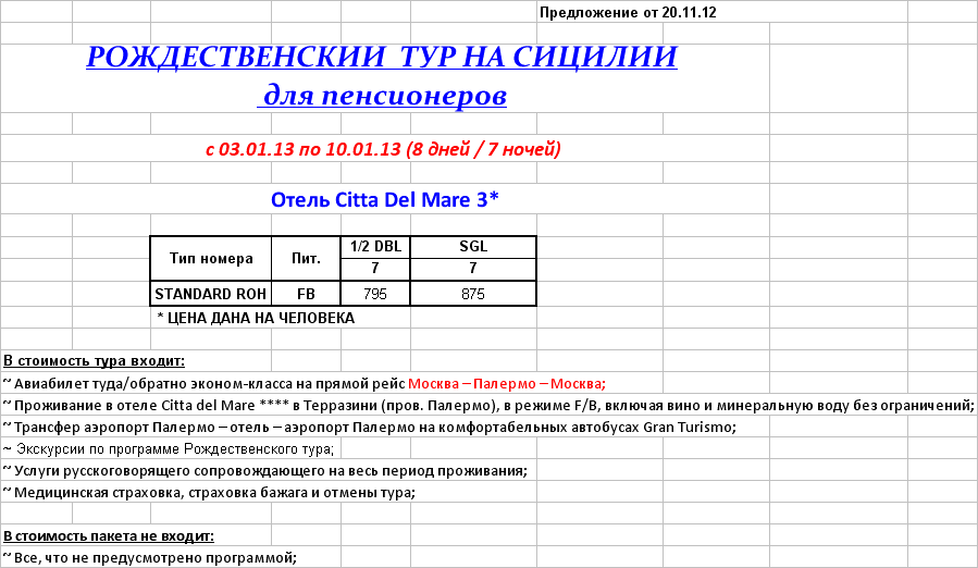 20 Ноя 2012 15:39:58 ИТАЛИЯ РОЖДЕСТВЕНСКИЙ ТУР НА СИЦИЛИИ для пенсионеров от фирмы ФОРОС