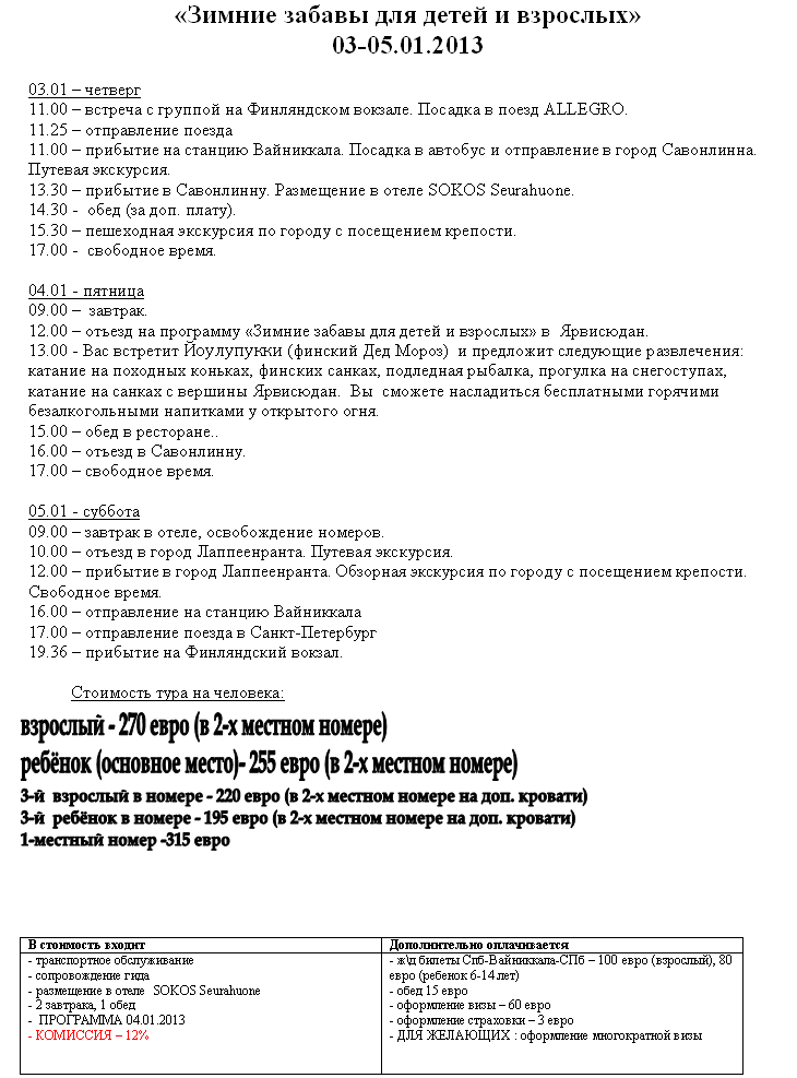 27 Ноя 2012 14:46:48 ФИНЛЯНДИЯ 03.01-05.01 Зимние забавы для детей и взрослых от фирмы ТЕТРА СПБ
