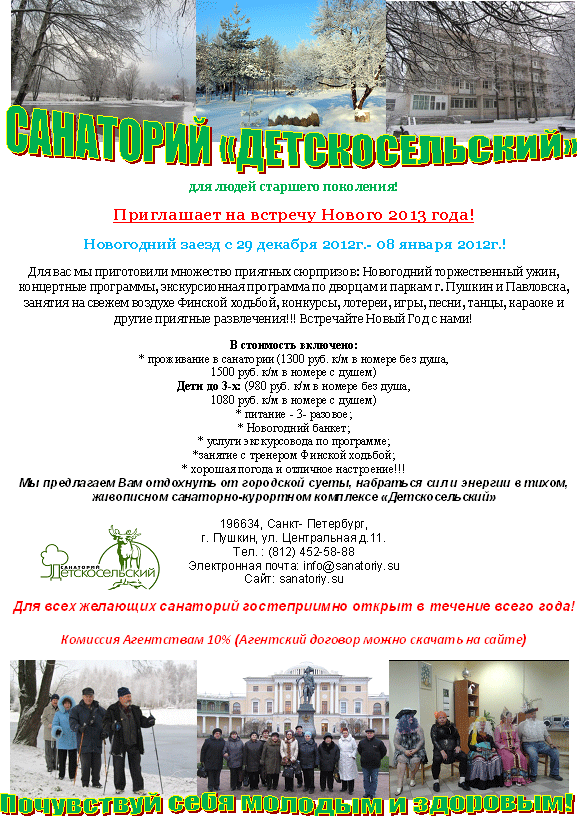 05 Дек 2012 13:56:28 РОССИЯ. ЛенОбласть. Встреча Нового года от фирмы САНАТОРИЙ ДЕТСКОСЕЛЬСКИЙ