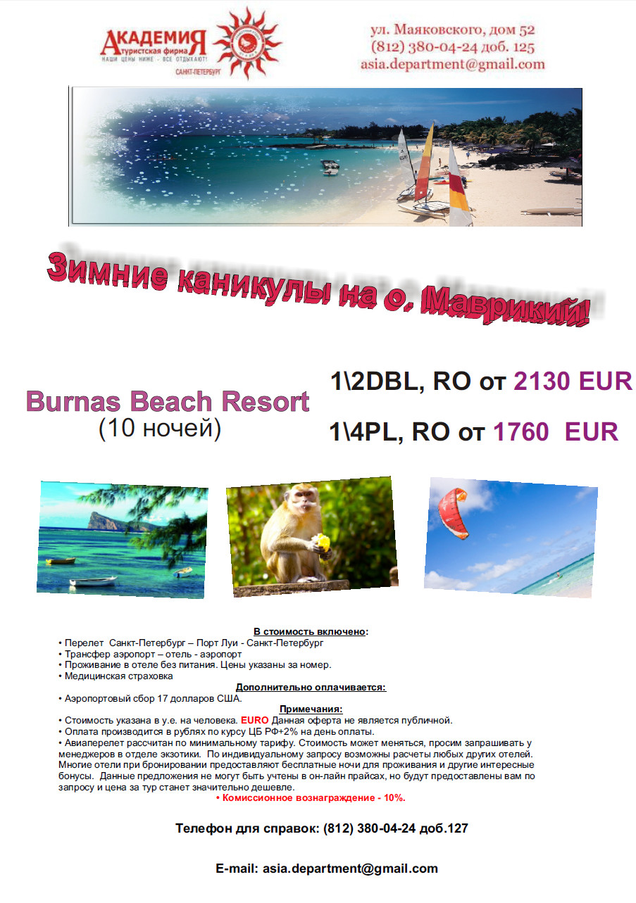 13 Дек 2012 11:48:48 МАВРИКИЙ Зимние каникулы от 2130 EUR от фирмы АКАДЕМИЯ