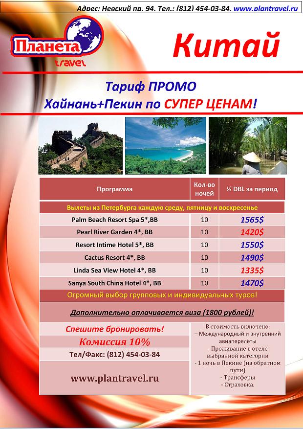 КИТАЙ Отдых на о.Хайнань от 1335$ включая авиаперелёт от фирмы ПЛАНЕТА TRAVEL