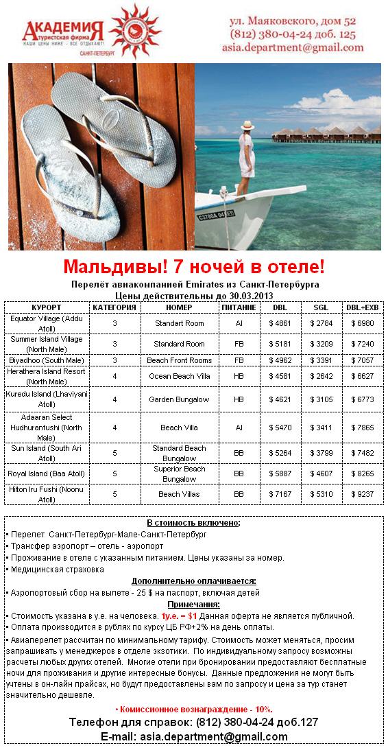 11 Фев 2013 11:32:52 МАЛЬДИВЫ Зима 2013 Сказочная неделя от фирмы АКАДЕМИЯ