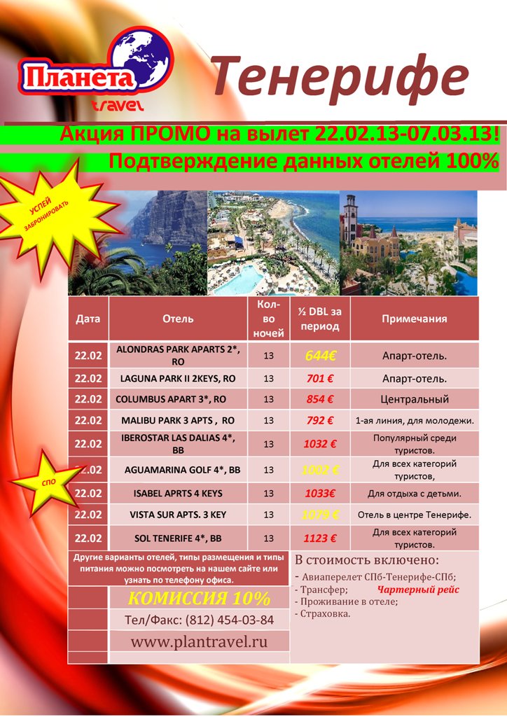 ИСПАНИЯ. ТЕНЕРИФЕ 22.02.13 На 13 ночей От 26.500 руб от фирмы ПЛАНЕТА TRAVEL |