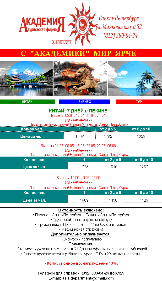 06 Мар 2013 12:20:38 КИТАЙ, Пекин. Бизнес-туры/самостоятельный отдых 7дней. Гарант. группы от фирмы АКАДЕМИЯ