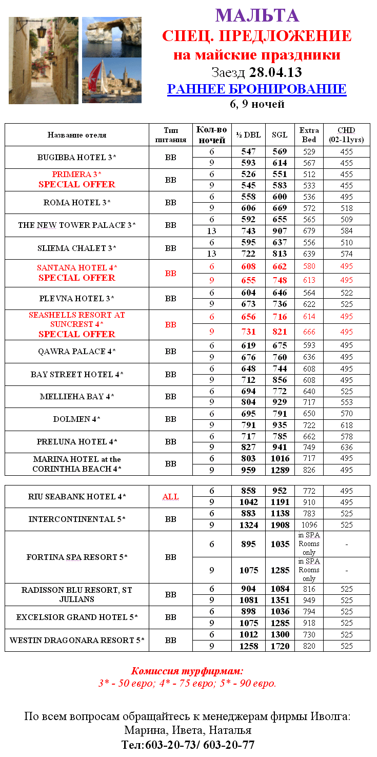 14 Мар 2013 12:29:35 МАЛЬТА Майские праздники 28.04 на 6 или 9 ночей - Раннее Бронирование от фирмы ИВОЛГА