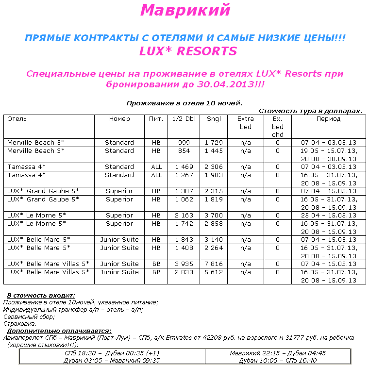 МАВРИКИЙ, Lux* Resorts от $854 за 10н при брон. до 30.04, Акция от фирмы ПИТЕРТУР |