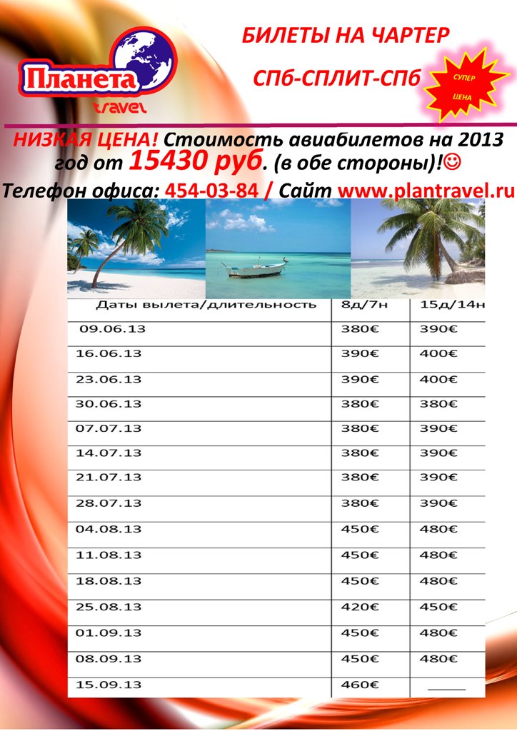 04 Апр 2013 11:22:33 ХОРВАТИЯ авиабилеты чартер СПб-СПЛИТ-СПБ от 15430 руб. (в обе стороны) от фирмы ПЛАНЕТА TRAVEL