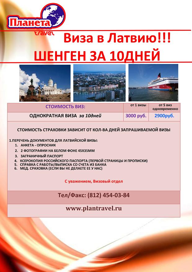ОФОРМЛЕНИЕ: ШЕНГЕН ЗА 10 ДНЕЙ. Оформление виз в Латвию от 2900 рублей от фирмы ПЛАНЕТА TRAVEL |