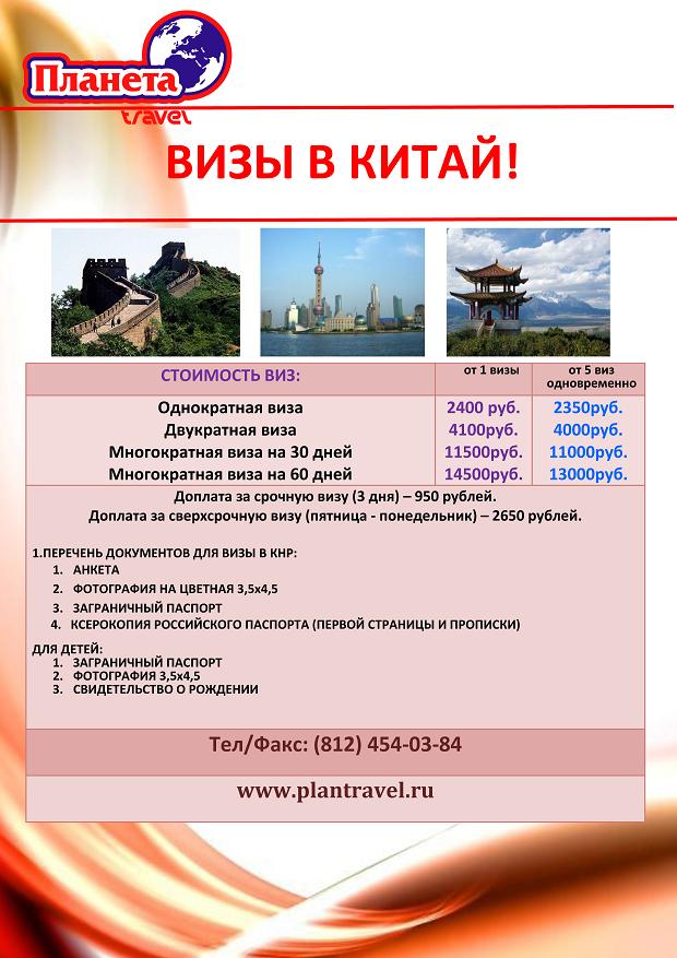 ОФОРМЛЕНИЕ визы в КИТАЙ от 2350 рублей от фирмы ПЛАНЕТА TRAVEL |