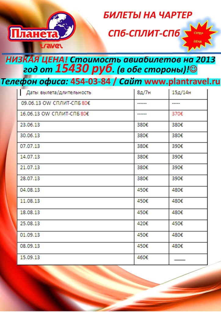 ХОРВАТИЯ. Авиабилеты на чартер. Сплит от фирмы ПЛАНЕТА TRAVEL |